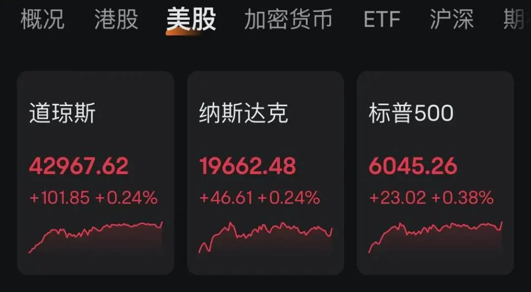 美股方面,美国三大股指小幅收涨,道指涨0.24%报42967.62点,标普500指数涨0.38%报6045.26点,纳指涨0.24%报19662.48点。