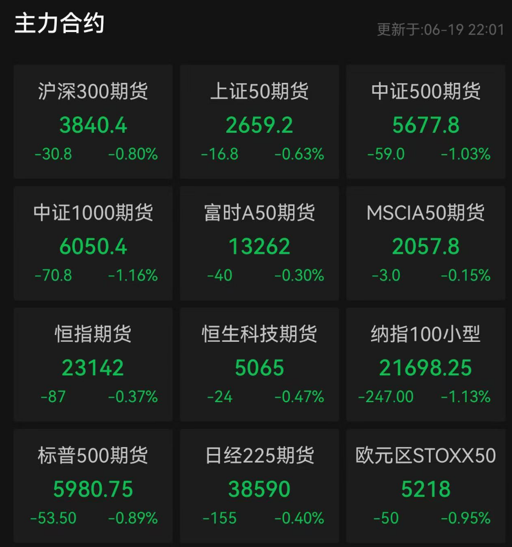 截至发稿,纳指100小型期货跌幅超过1%,标普500期货盘中也一度跌超1%。