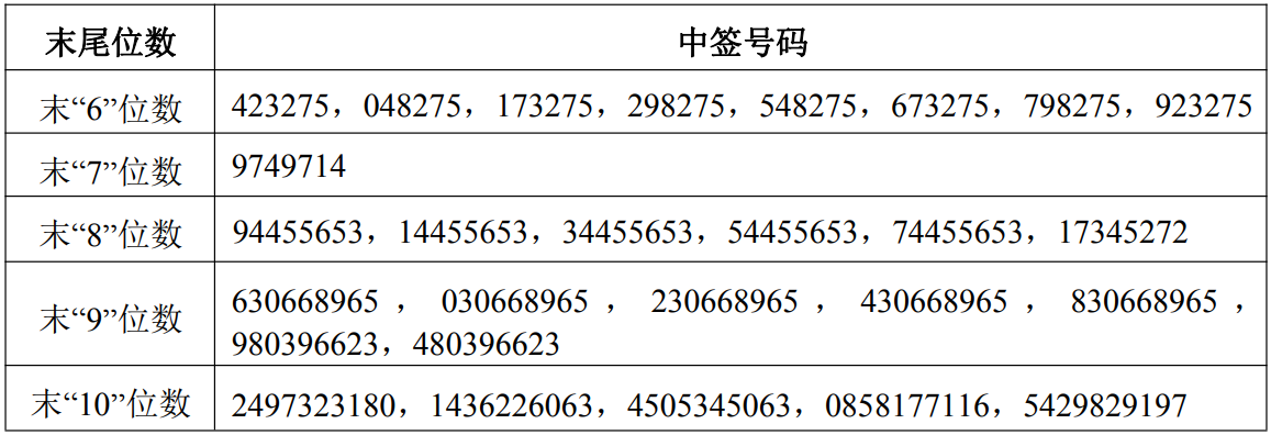 中签结果