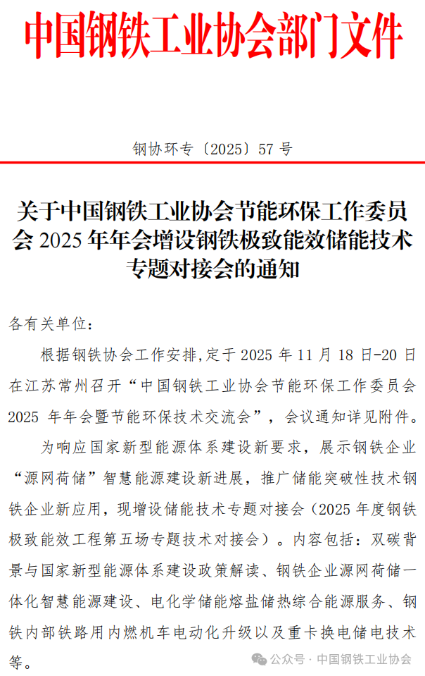 中钢协节能环保工作委员会2025年年会增设钢铁极致能效储能技术专题对接会