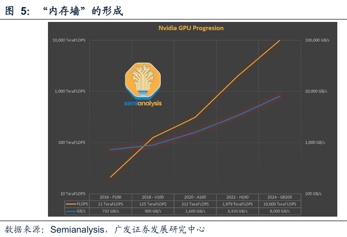 Transformer架构的兴起导致AI模型的程序性记忆(即模型权重)容量需求呈指数级增长,其速度远远超过了单个GPU上高带宽内存(HBM)的增长速度,对内存提出了更高的要求与更多的需求。