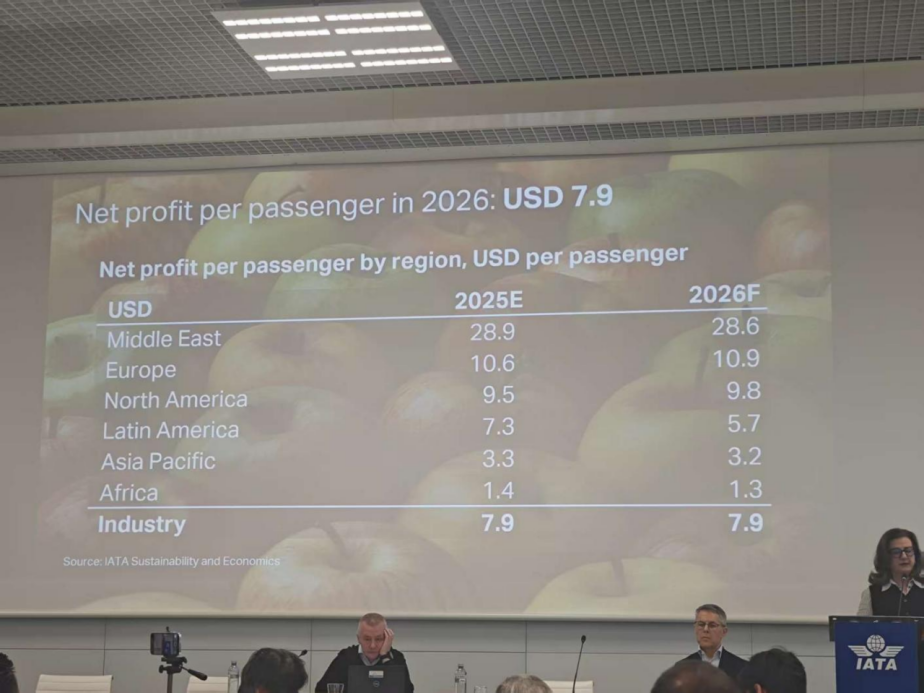 “全球航司总净利润410亿美元,创历史新高;净利率维持在3.9%与2025年持平;每位旅客平均净利润为7.90美元,低于2023年的历史高点8.50美元,与2025年持平。”——这是国际航空运输协会(IATA)12月9日对明年全球航空业财务表现进行的预测。