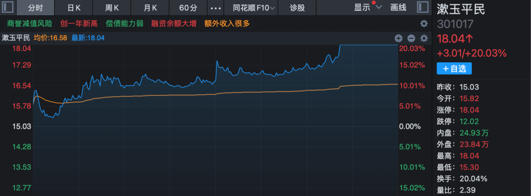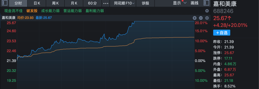 养老概念股今日大幅活跃,漱玉平民临近尾盘20%涨停,嘉和美康亦在下午开盘没多久后20cm封板,卫宁健康、一心堂、奥佳华、重药控股等逾10股也强势涨停或涨超10%。