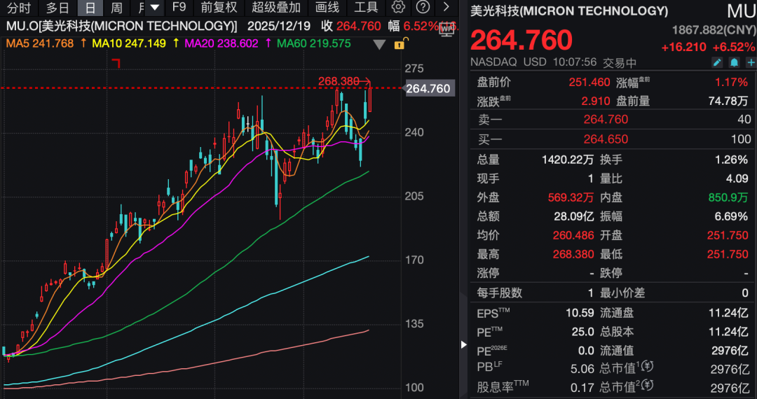 大型科技股普遍上涨,甲骨文涨逾7%。美光科技涨近7%。消息面上,美光科技首季业绩表现强劲,营收同比增长56.7%至136.4亿美元,经营利润同比大增168.1%至64.19亿美元。随后多家大行纷纷上调对美光科技的目标价。