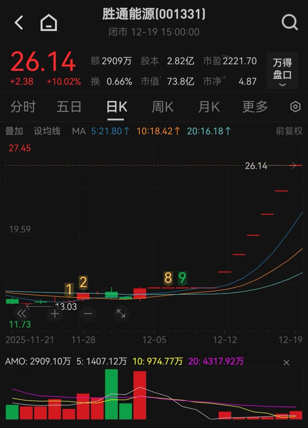 胜通能源(001331)12月21日晚间公告,公司股票自12月12日以来连续6个交易日涨停,累计涨幅达到77.22%,显著偏离大盘指数和行业指数,短期波动幅度较大,已明显偏离市场走势,存在较高的炒作风险,目前公司股价已严重偏离上市公司基本面,未来存在快速下跌的风险。