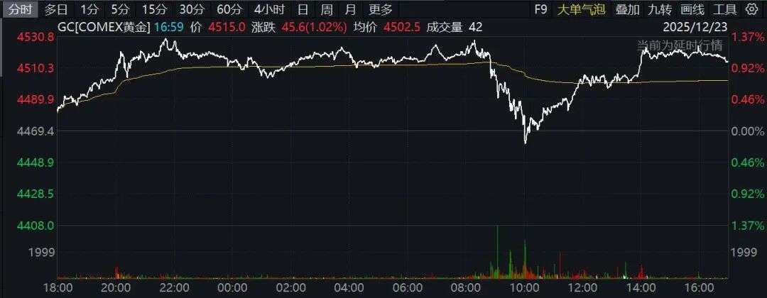 隔夜美股盘中拉升。12月24日黄金高开再创新高。关于美联储未来降息,传来大消息,特朗普也表态。