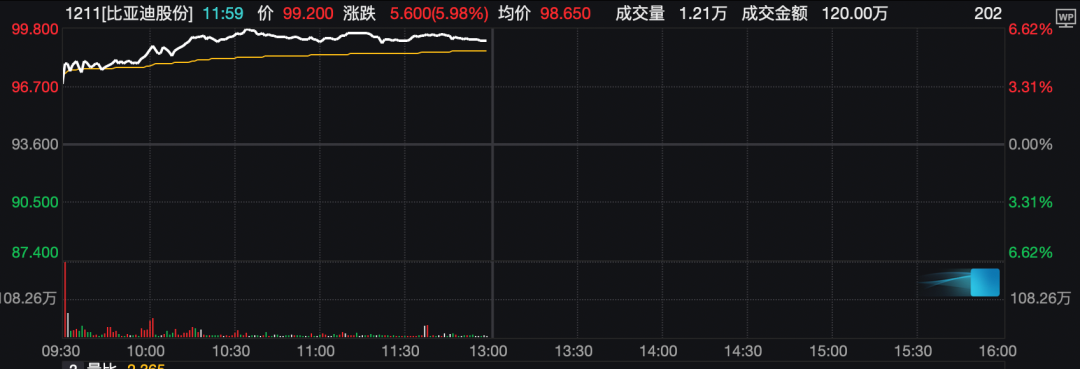 港股比亚迪股份(01211.HK)盘中大涨超6%。