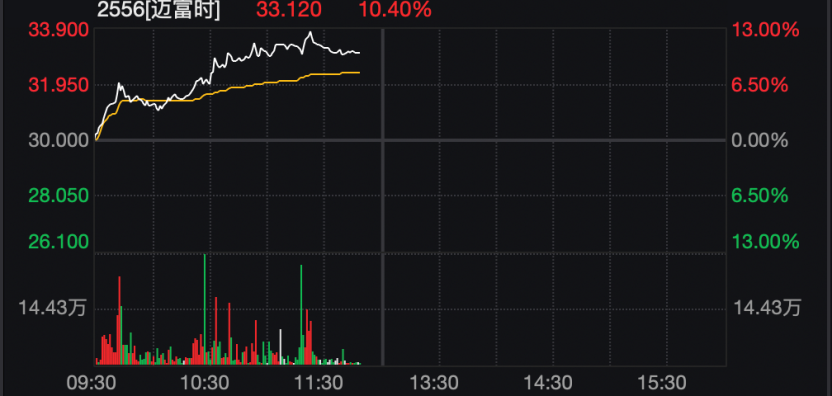 港股通标的股中,迈富时大涨,盘中涨幅超过13%。
