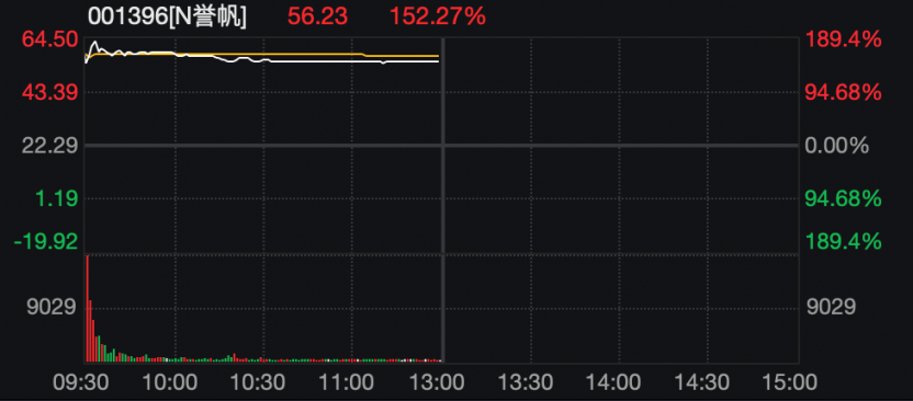新股誉帆科技盘中涨幅超过180%。