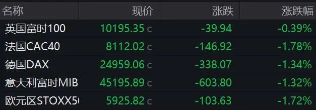 1月19日欧洲主要股指收盘集体下跌,欧洲斯托克(Eurostoxx)50指数跌超1.7%,英国富时100指数跌约0.4%,法国CAC40指数跌1.78%,德国DAX30指数跌超1%,意大利富时MIB指数跌1.32%。