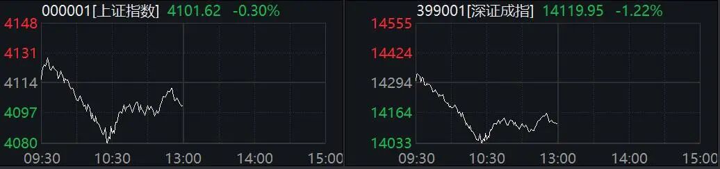 1月20日早盘,A股震荡调整,上证指数盘中一度跌破4100点,深证成指回试14000点支撑,创业板指跌破3300点,科创50也失守1500点。下跌个股远多于上涨个股,成交保持平稳。