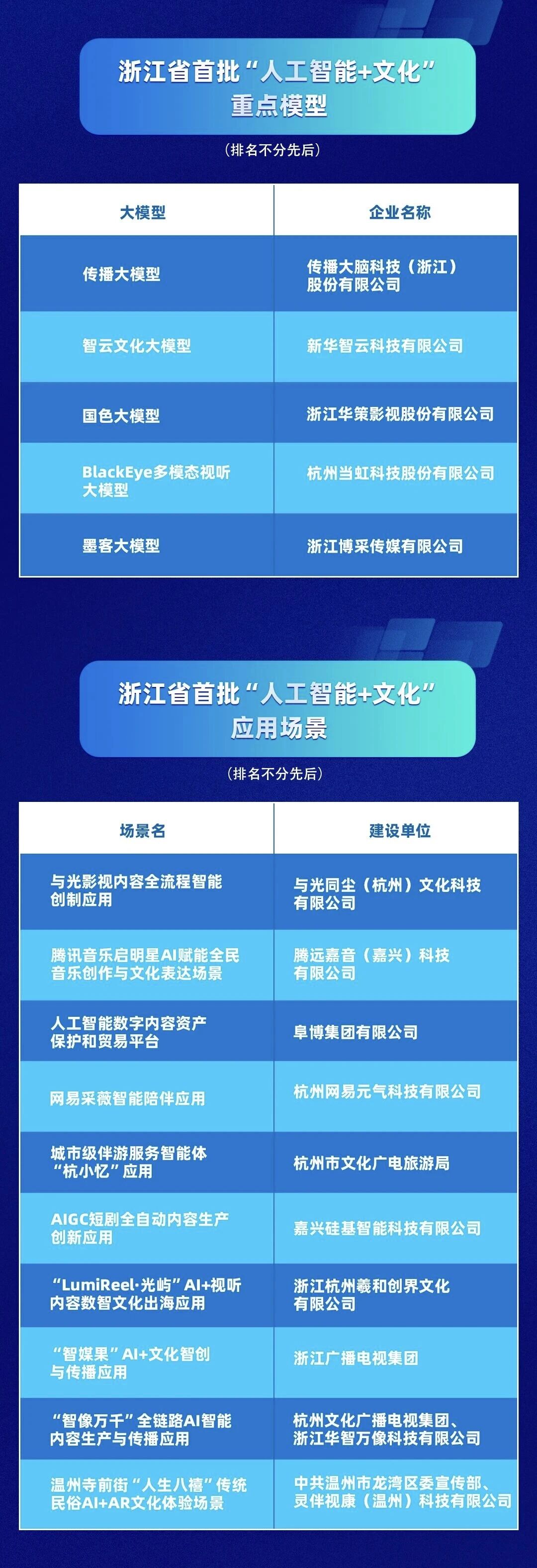 人民财讯1月20日电,据浙江发布消息,为落实浙江省委省政府关于加快建设高水平文化强省的工作要求和促进人工智能高质量发展的工作部署,加快推动文化和人工智能深度融合创新发展,浙江省委宣传部发布首批“人工智能+文化”重点模型和应用场景。