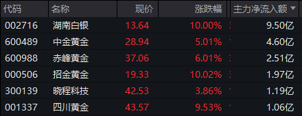 Wind实时监测数据显示,早盘,贵金属板块获得逾21亿元主力资金净流入,其中湖南白银、中金黄金、赤峰黄金等6股获得超亿元主力资金净流入。