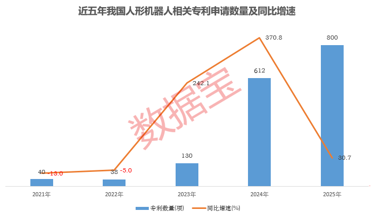 企查查数据显示,截至目前,国内现存人形机器人相关专利达2000余项。2021年以来,我国累计申请人形机器人相关专利1620项。2025年全年,我国累计申请800项人形机器人相关专利,同比增长30.7%,创近五年相关专利申请量新高。