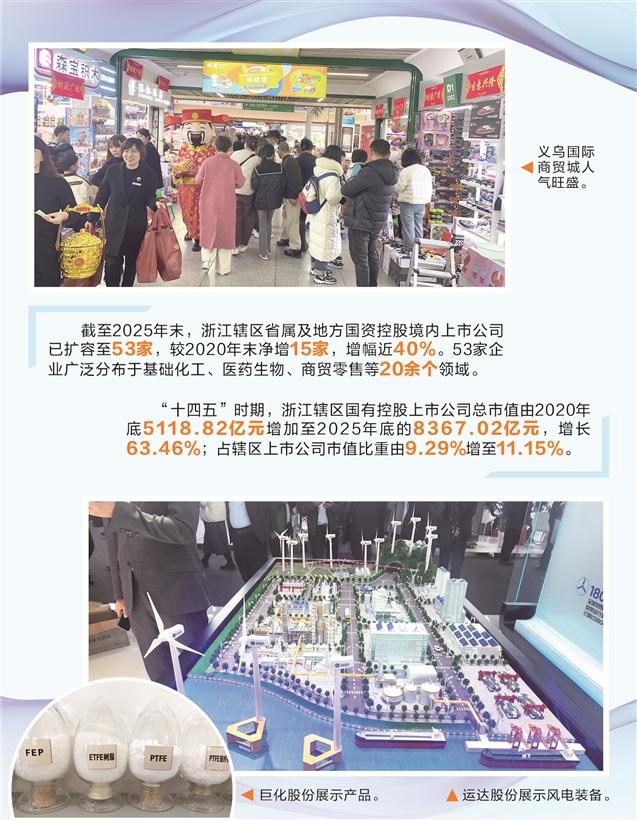 “十四五”时期是浙江国有控股上市公司提质增效、能级跃升的关键五年。各家企业聚焦核心主业,以创新驱动突破发展瓶颈,以规模扩张巩固行业地位,总市值、总资产、营收与净利润等关键指标实现亮眼增长,为浙江高质量发展筑牢产业根基。