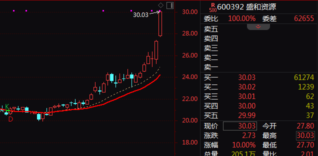 1月29日,盛和资源股价涨停,市值超500亿元。