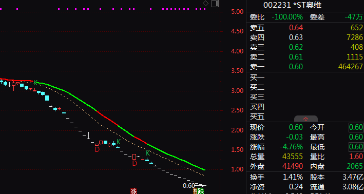 市场层面,2025年下半年以来,*ST奥维股价持续低迷,多次出现连续跌停走势。数据显示,自2025年10月起,公司股价逐步跌破3元,12月以来连续多日跌停。截至2026年1月29日,该公司股价报收0.6元/股,总市值仅余2.08亿元,远低于5亿元的监管红线。