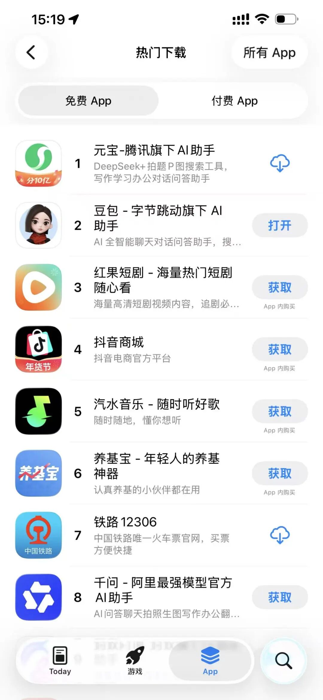 腾讯元宝,升至苹果商店免费App榜单第一名