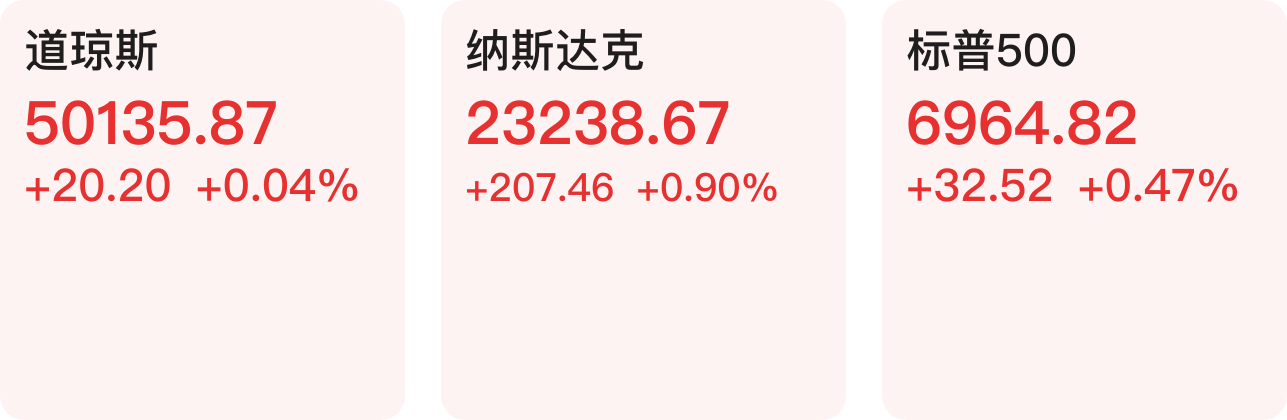 美股三大指数9日集体收涨,道指涨0.04%,纳指涨0.9%,标普500指数涨0.47%。盘面上,大型科技股多数上涨,甲骨文涨超9%,微软、博通涨超3%,英伟达、Meta涨超2%。纳斯达克中国金龙指数收涨0.12%,世纪互联涨超5%,小马智行涨超3%,理想汽车跌超3%,蔚来跌近3%。