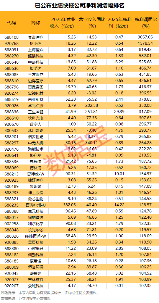 业绩快报抢先看:超40股净利润增幅超100%