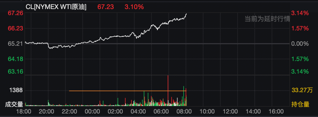 在美国极限施压之下,伊朗局势越发紧张。2月27日晚间,国际油价持续拉升。截至发稿,WTI原油报67.23美元/桶,涨幅为3.1%;布油报72.9美元/桶,涨幅也接近3%。