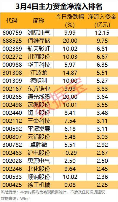洲际油气主力资金净流入超12亿元
