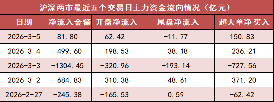 今日沪深两市主力资金开盘净流入62.42亿元,尾盘净流出11.77亿元,两市全天主力资金净流入81.8亿元。