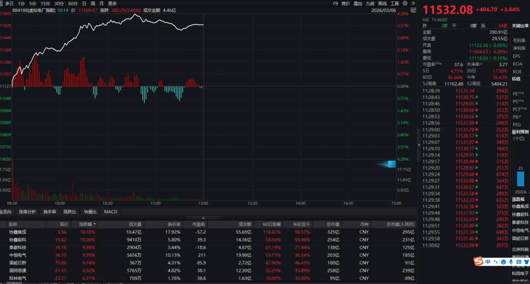 概念板块方面,虚拟电厂概念股表现强势,万得虚拟电厂概念指数暴涨超过3%,该指数成份股中,协鑫集成等多股涨停。