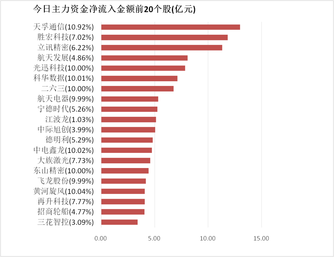 4. 天孚通信主力资金净流入12.98亿元居首