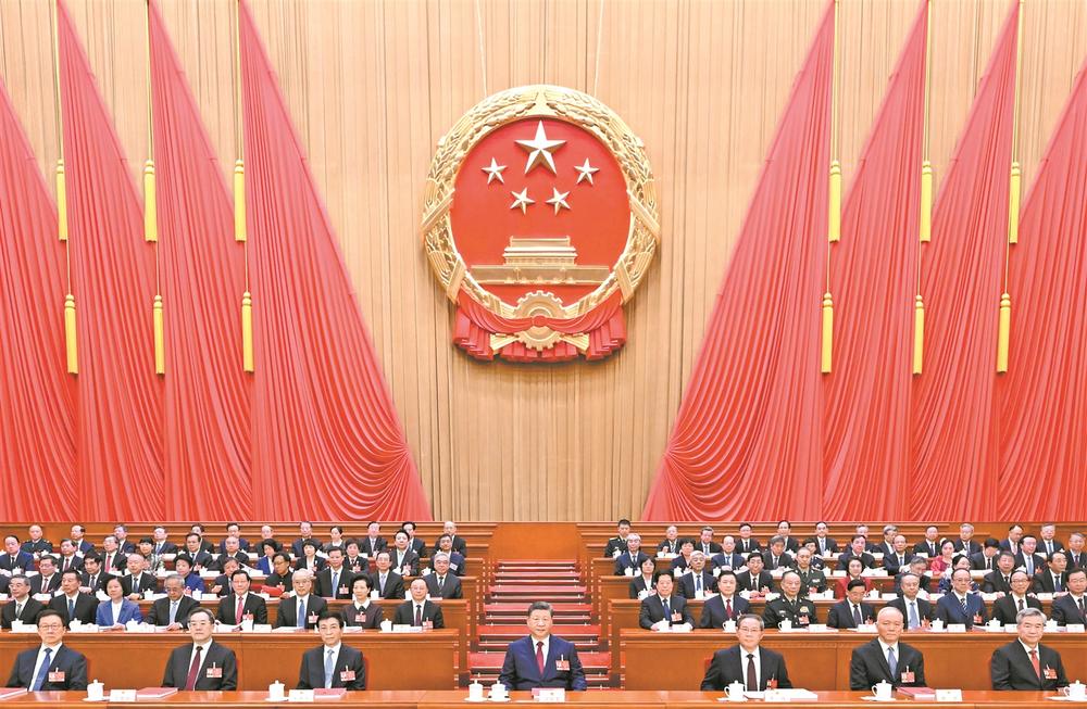 3月12日下午,第十四届全国人民代表大会第四次会议在北京人民大会堂闭幕。党和国家领导人习近平、李强、王沪宁、蔡奇、丁薛祥、李希、韩正等在主席台就座。新华社记者 谢环驰/摄