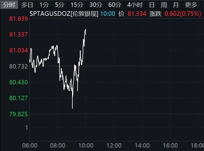 国际金银盘中双双拉升。截至发稿,现货黄金涨近0.5%;现货白银涨近0.8%,此前一度跳水跌近1%。