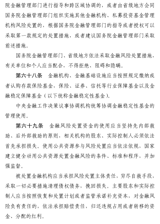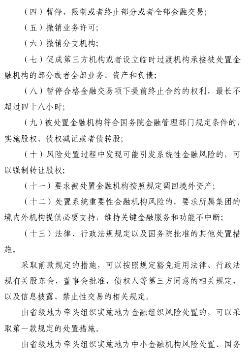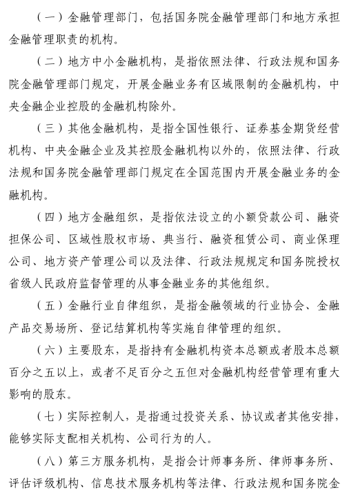 三是规范金融机构行为活动。对金融机构准入、经营、退出实施全周期管理。明确金融机构及其分支机构设立、重大事项变更须经批准。