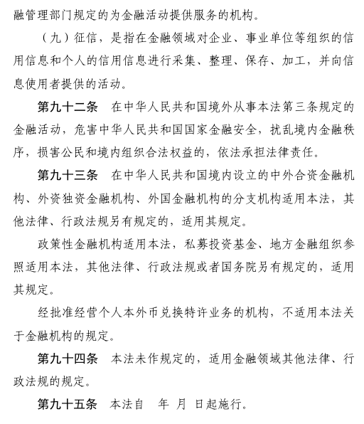 金融法草案向社会公开征求意见