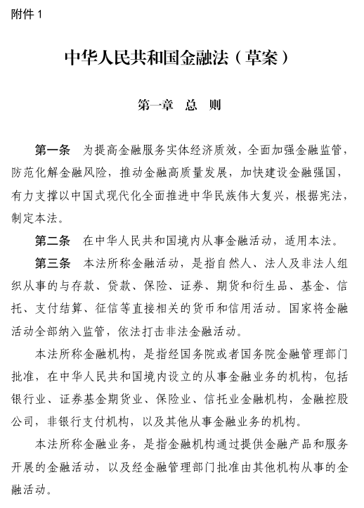 2026年3月20日,司法部、中国人民银行、金融监管总局、中国证监会、国家外汇局在门户网站公布《中华人民共和国金融法(草案)》(以下简称草案),向社会公开征求意见。