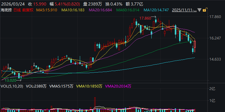 数据显示,2025年底时,南向港股通资金持有的海底捞股票数量约为4.83亿股,2026年1月底增长为4.85亿股,2026年2月进一步大幅增长,至2026年2月底增至5.27亿股。2026年3月以来,南向港股通资金持有的海底捞股票数量进一步增长,至2026年3月23日为5.29亿股。这意味着,2026年以来南向港股通资金持有的海底捞股票数量累计已增长约0.46亿股。