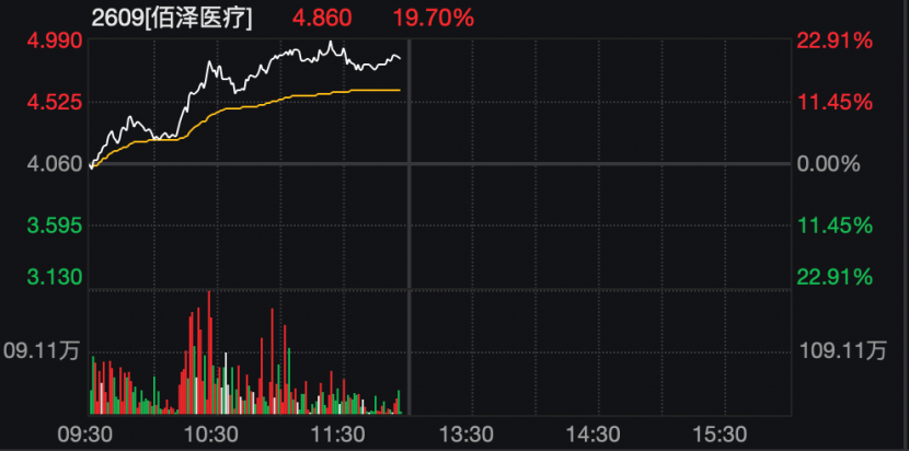 港股通标的股中,佰泽医疗大涨,盘中涨幅超过20%。