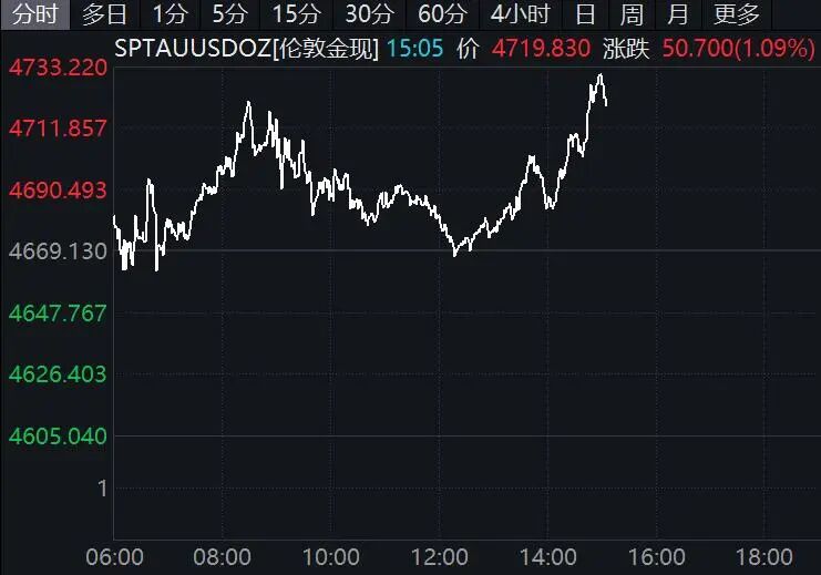国际金银盘中拉升,现货黄金涨逾1%,现货白银V形回升,盘中一度转为上涨。