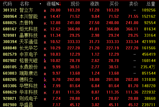 CPO概念盘中强势拉升,截至收盘,智立方20%涨停,创历史新高;本川智能涨超14%,杰普特、炬光科技、天孚通信等涨超10%。