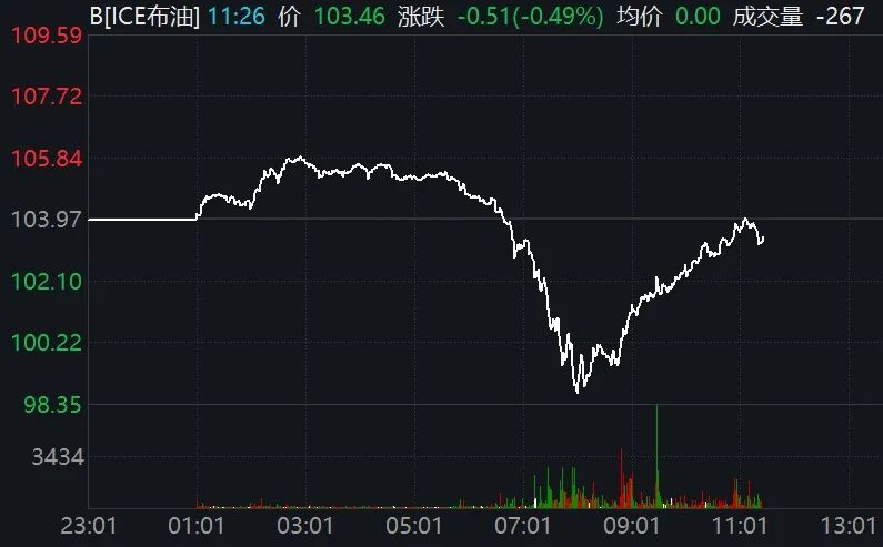 国际油价盘中回升,截至发稿,WTI原油跌幅收窄至1%;布伦特原油一度逼近翻红,此前一度暴跌近5%。