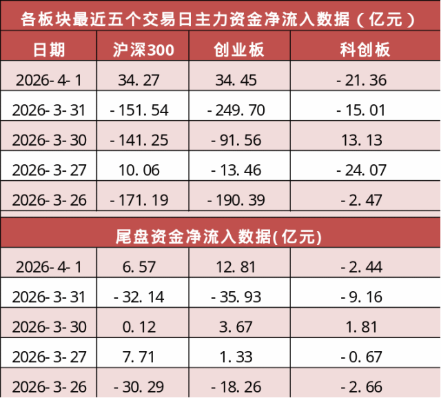 沪深300今日主力资金净流入34.27亿元,创业板净流入34.45亿元。