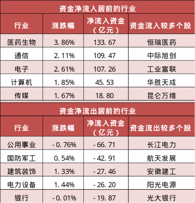 3. 医药生物等行业实现净流入