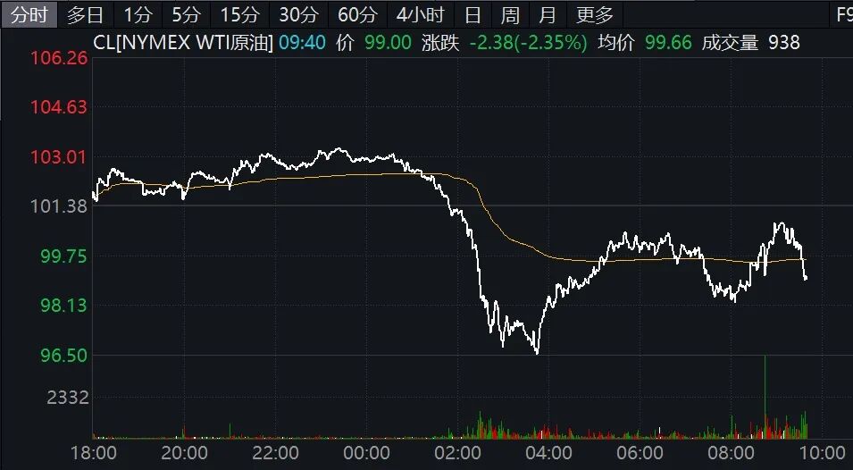 国际原油期货剧烈波动,截至发稿,再度跌超2%。