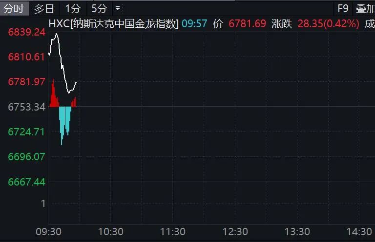 中概股方面,纳斯达克中国金龙指数涨幅有所回落,截至发稿,上涨0.42%。
