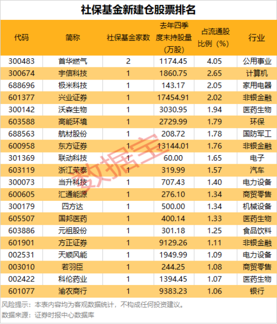 社保基金新建仓股票