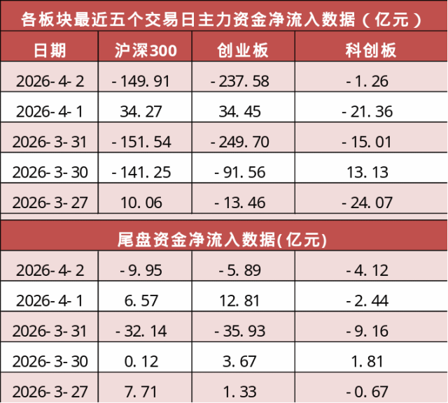 沪深300今日主力资金净流出149.91亿元,创业板净流出237.58亿元,科创板净流出1.26亿元。