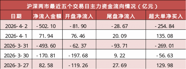 1. 两市主力资金净流出超500亿元