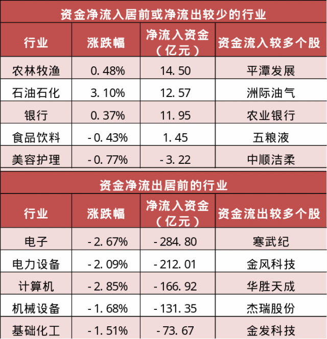 3. 农林牧渔等行业实现净流入