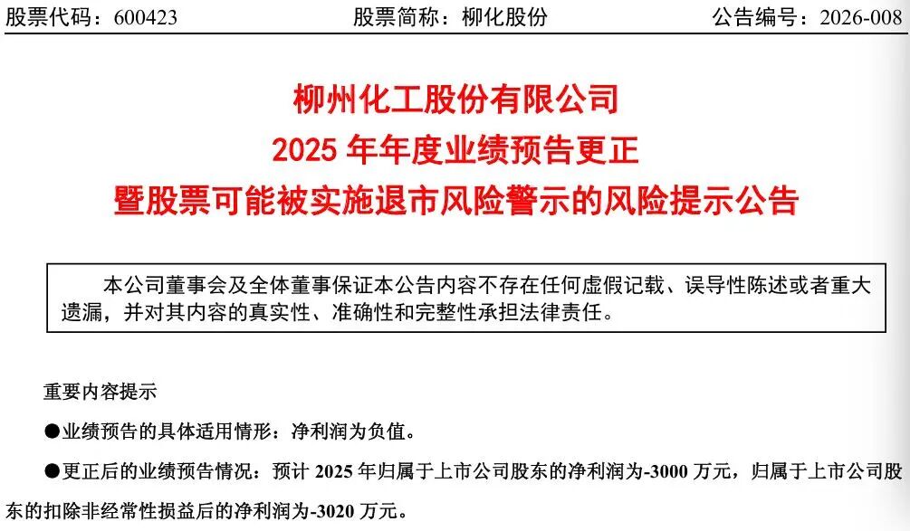 柳化股份原定于4月11日(一般指4月10日晚间)披露2025年年度报告。随着业绩预告的“变脸”,公司同步称,为进一步完善定期报告编制和复核的相关工作,确保2025年年度报告披露的真实性、准确性和完整性,经向上交所申请,公司将2025年年度报告披露时间延期至4月25日。
