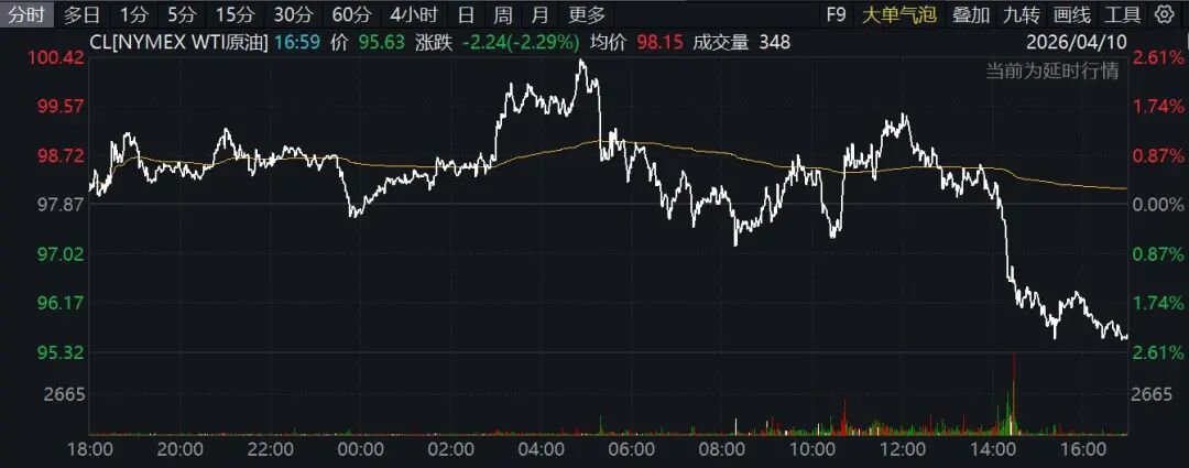 4月10日国际油价跳水,WTI原油下跌逾2%,布伦特原油6月合约结算价下跌0.75%。
