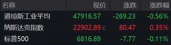 美股方面,三大指数收盘涨跌不一,纳指涨0.35%,标普500指数跌0.11%,道指跌0.56%。科技股多数走高,博通涨超4%,AMD涨超3%,英伟达、亚马逊涨超2%。